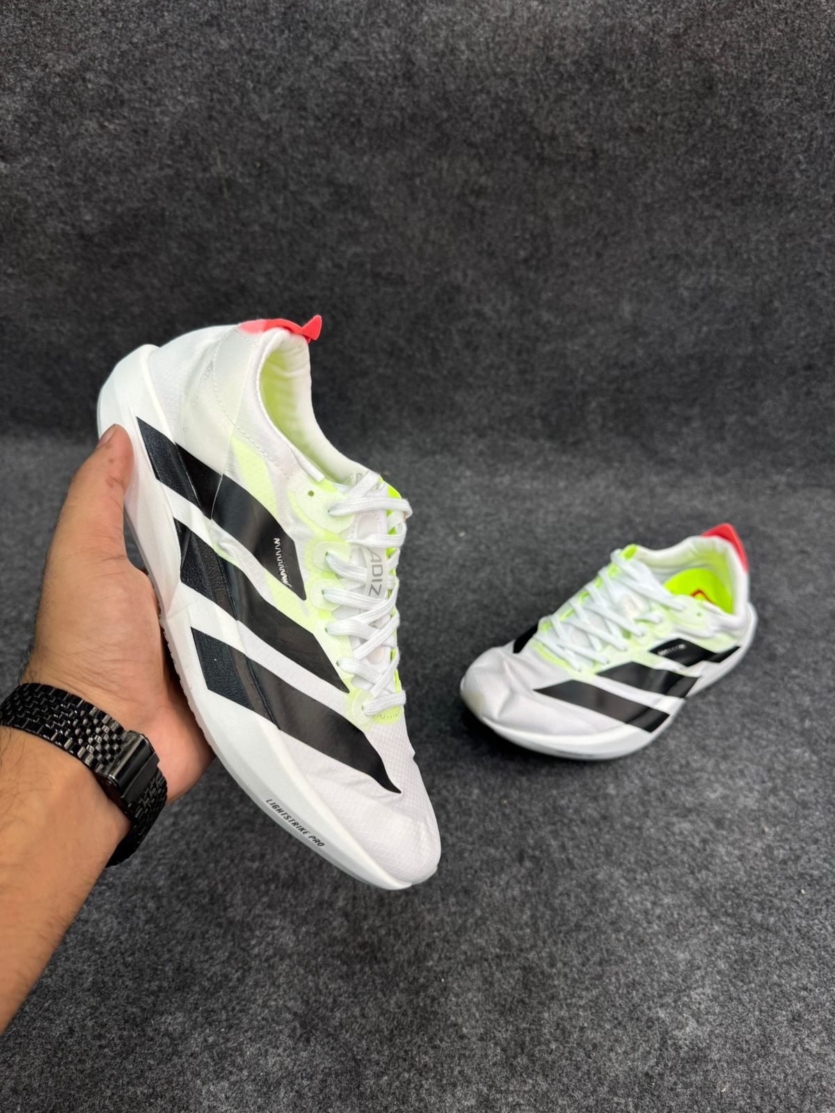 Chasing finish lines requires lightweight shoes with energy, and these adidas running shoes have it. Achieve your next half-marathon PB with super-light and resilient Lightstrike Pro cushioning. Push for your fastest pace with the support of a stretch mesh upper that provides a light, locked-in feel. A rubber outsole grips the pavement as you go.