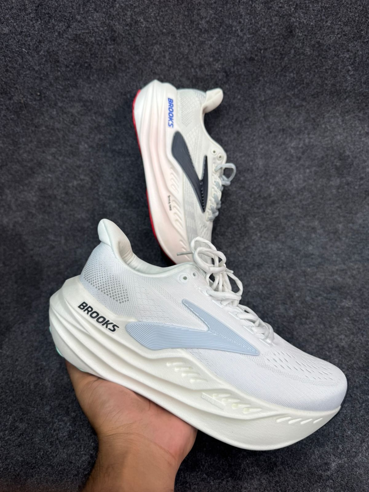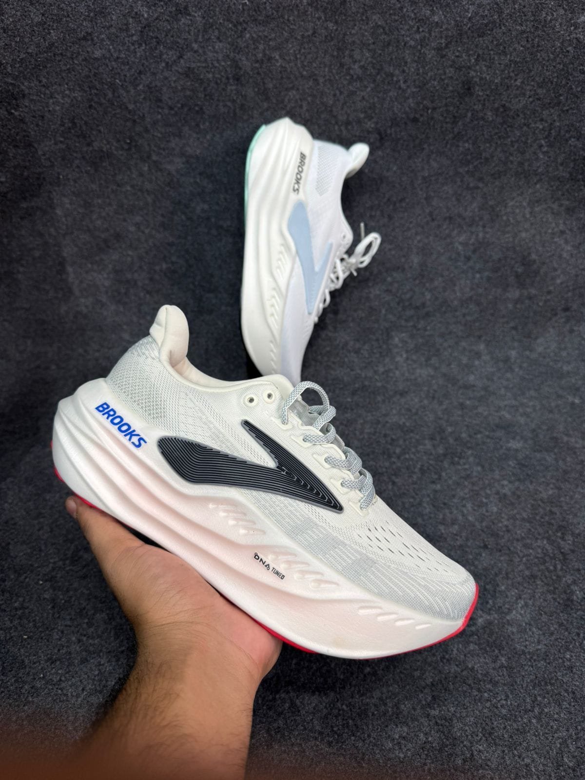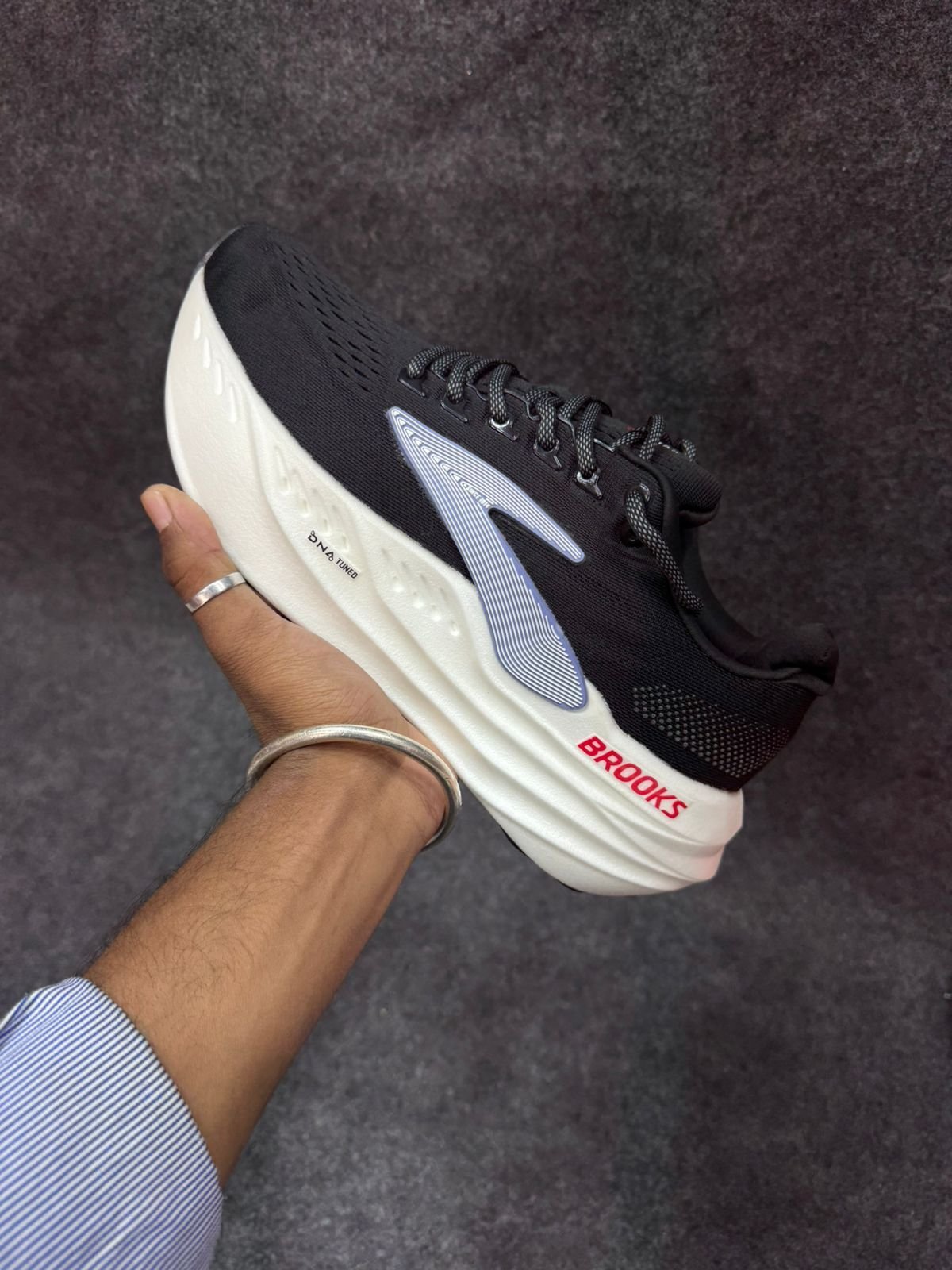 Run effortlessly with the cutting-edge nitro-infused DNA Tuned cushion of the Brooks Glycerin Max sneakers. The low-top shoes feature sleek knit polyester upper, nylon lining, EVA insole, and DNA-tuned midsole. Lace-up closure. Branding on the side. Elevated round toe design. Rubber outsole. Imported